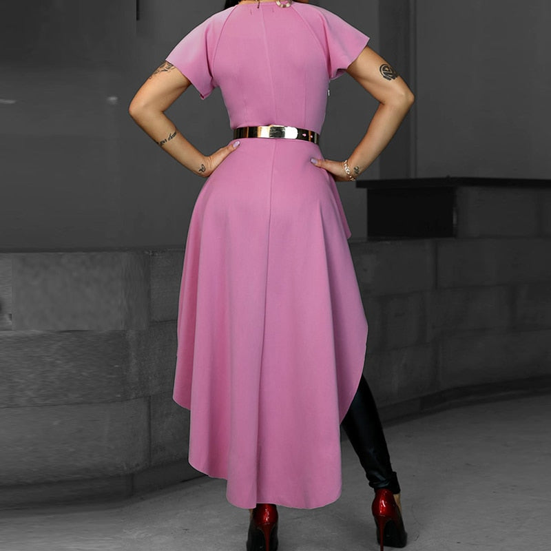 V Collar Short Sleeve Irregular Hem Asymmetric Long Blouse