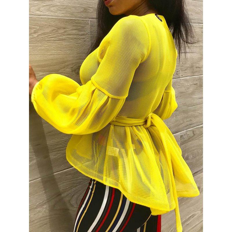 Yellow Hipster Chic Lantern Sleeve Lace Up Blouse