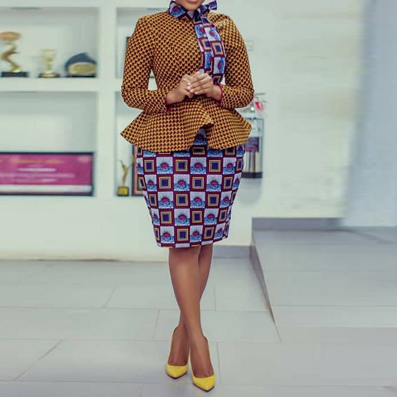 Knee-Length 2 Piece Set Print Bodycon Skirt Dress
