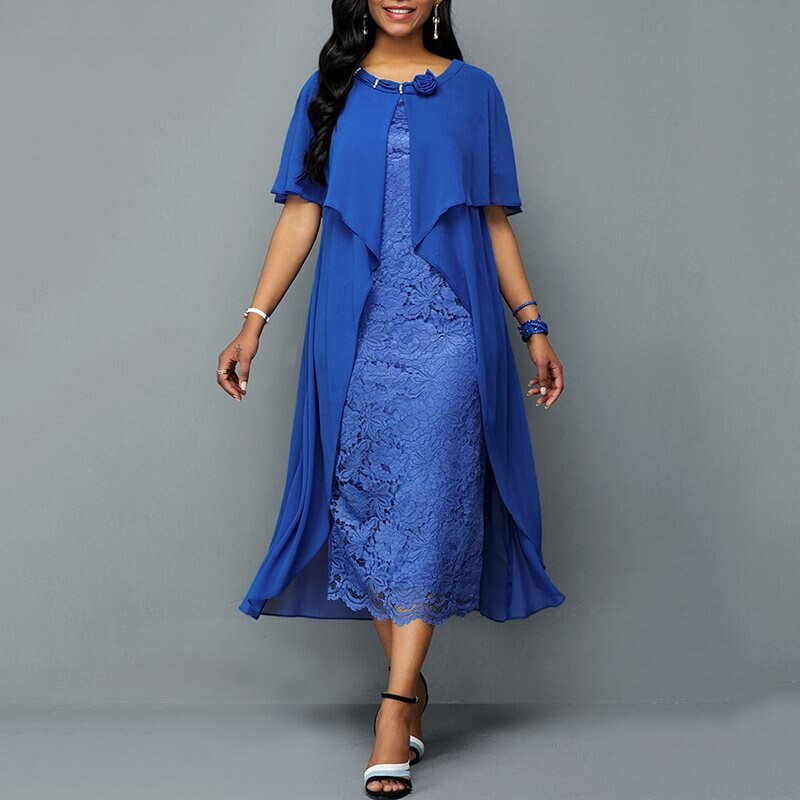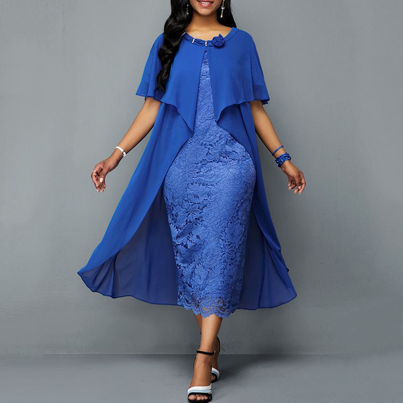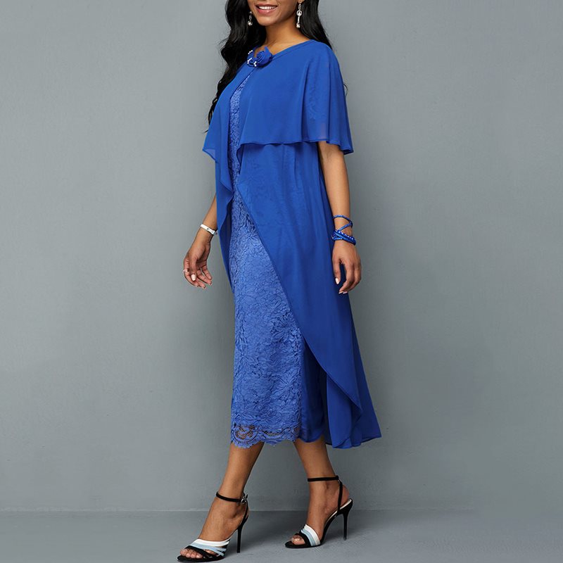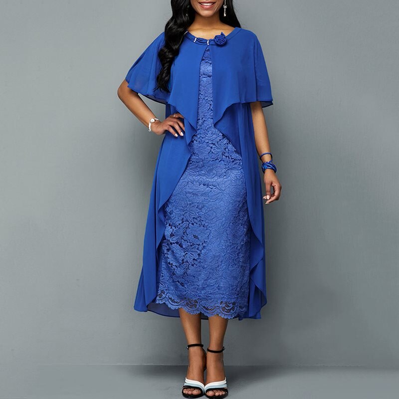 Mid-Calf Short Sleeve Patchwork Falbala Bodycon Dress