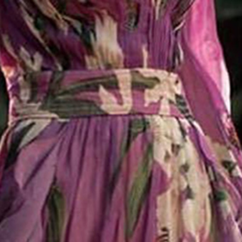 Long Sleeve A-Line Floral Printed V-Neck Pleated Dress