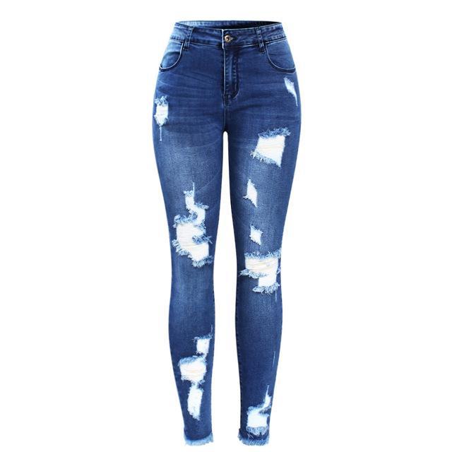 Ultra Stretchy Blue Tassel Ripped Denim Jeans & Pants