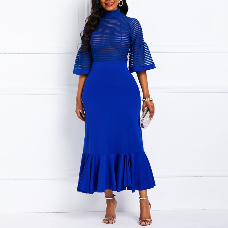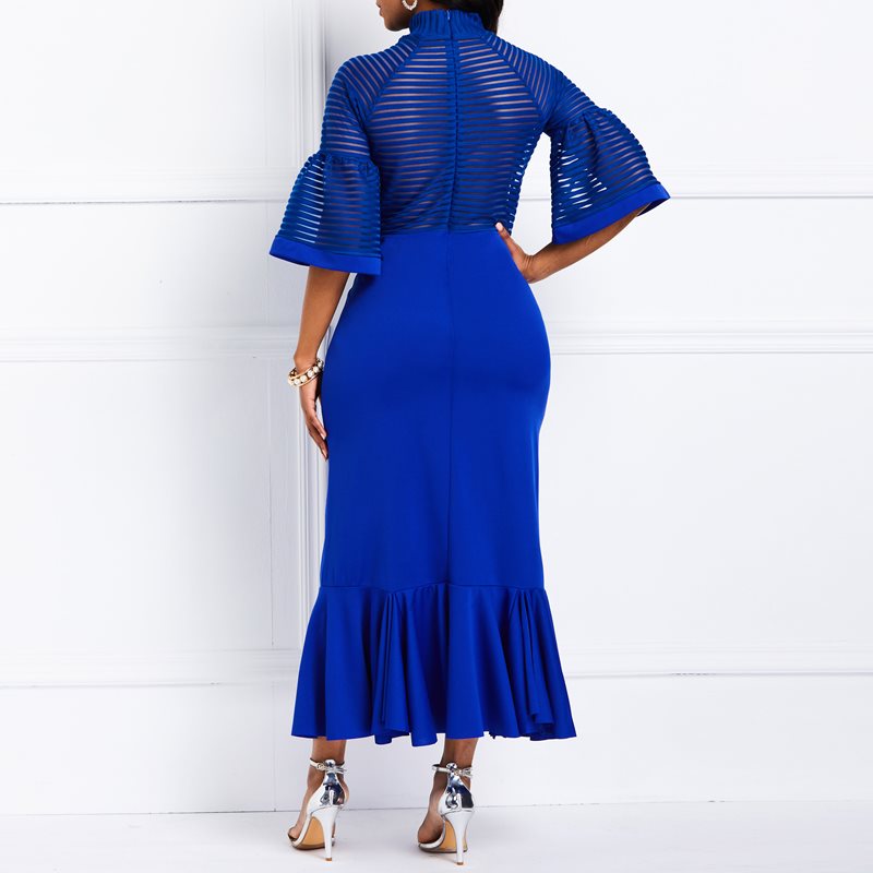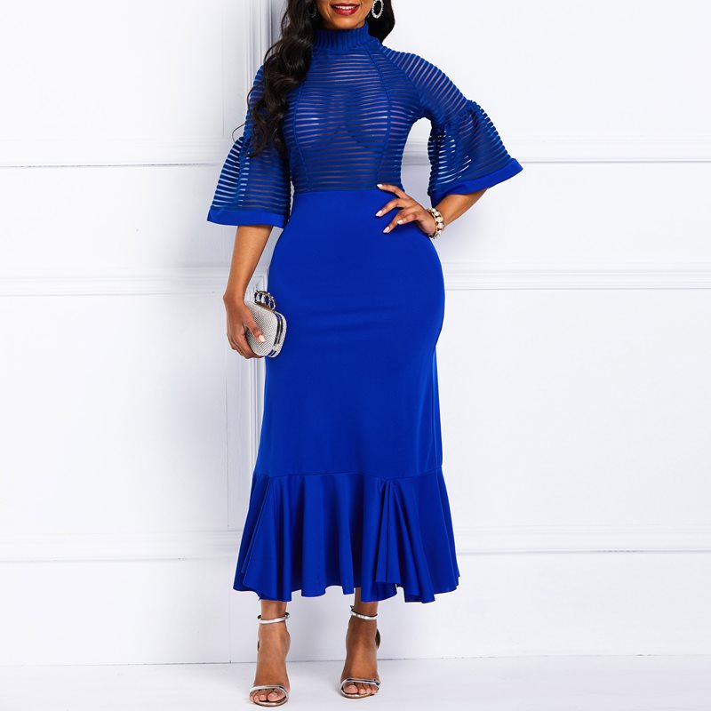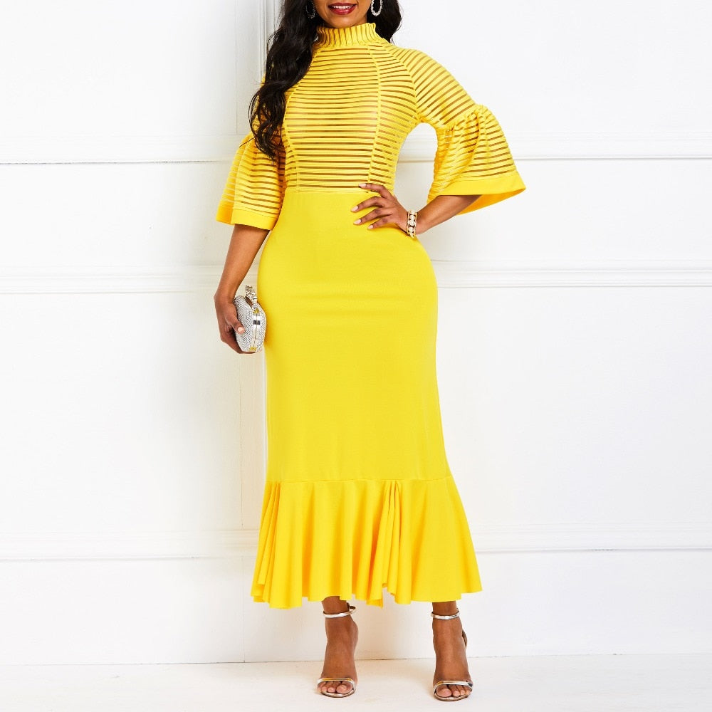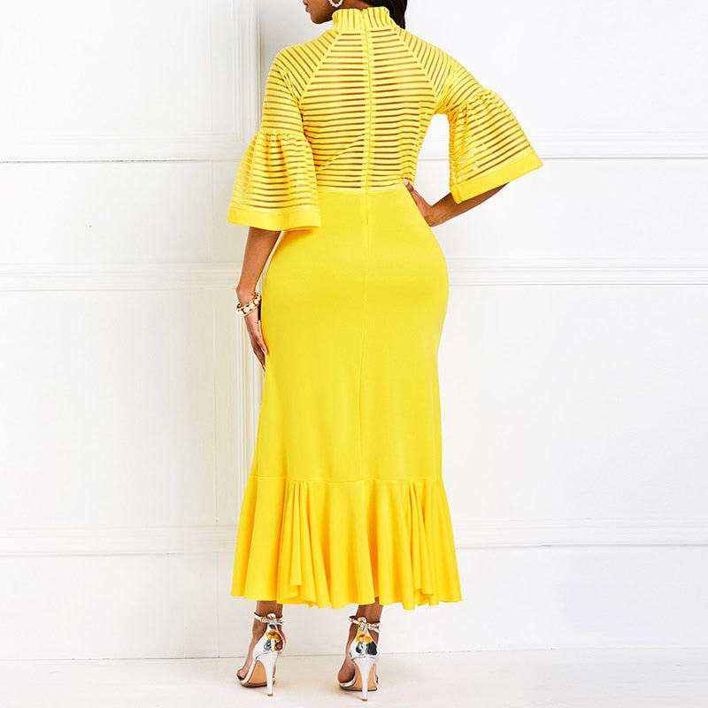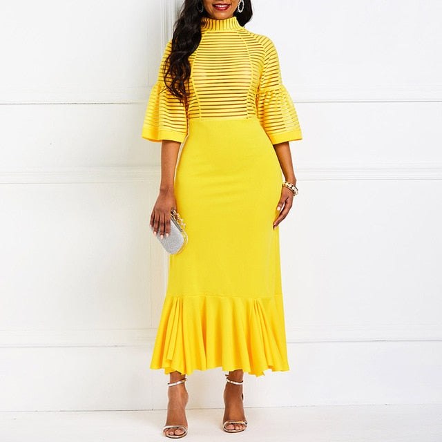 Lantern Sleeve Falbala Mermaid High Waist Maxi Dress