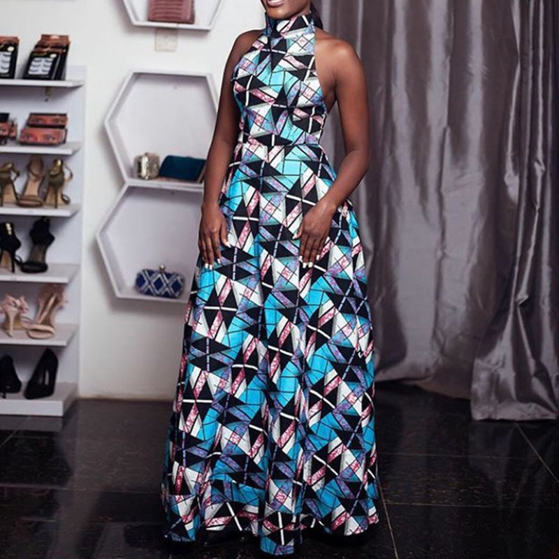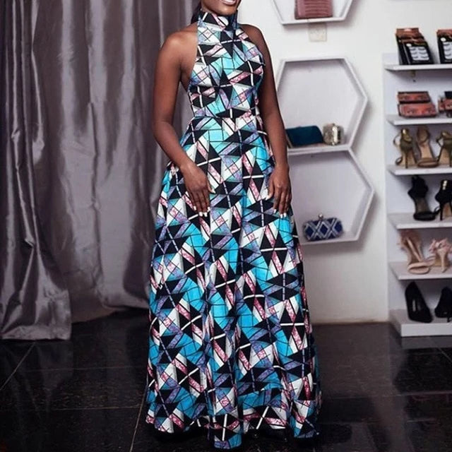 Plaid Print Backless Floor-Length Sleeveless Maxi Dress