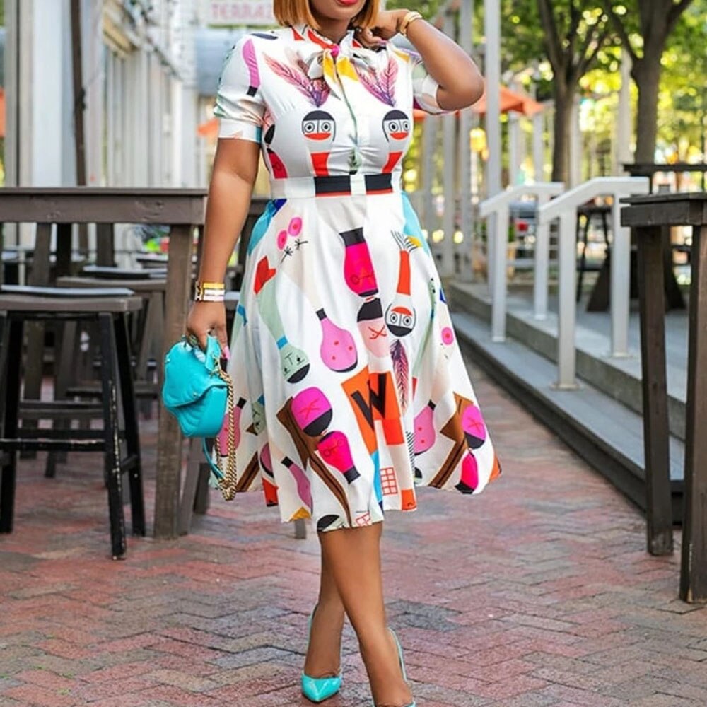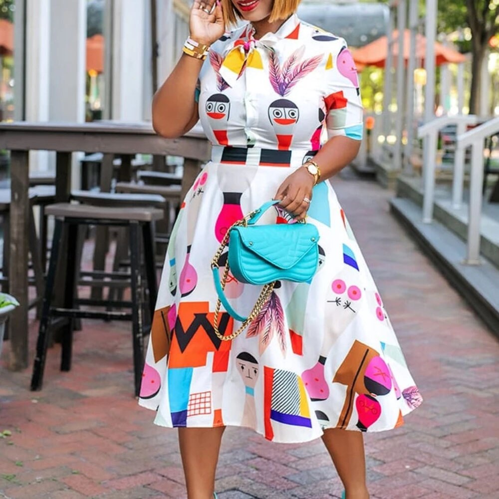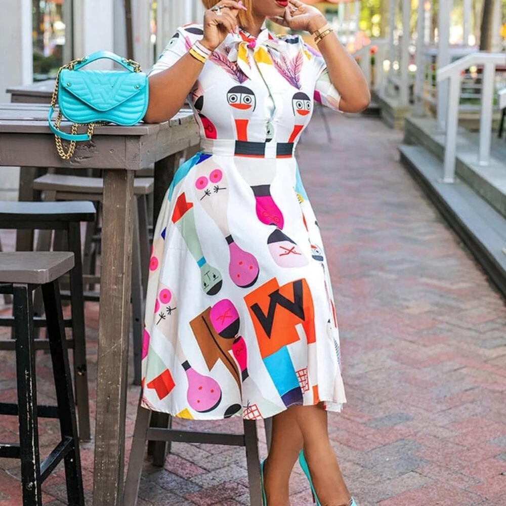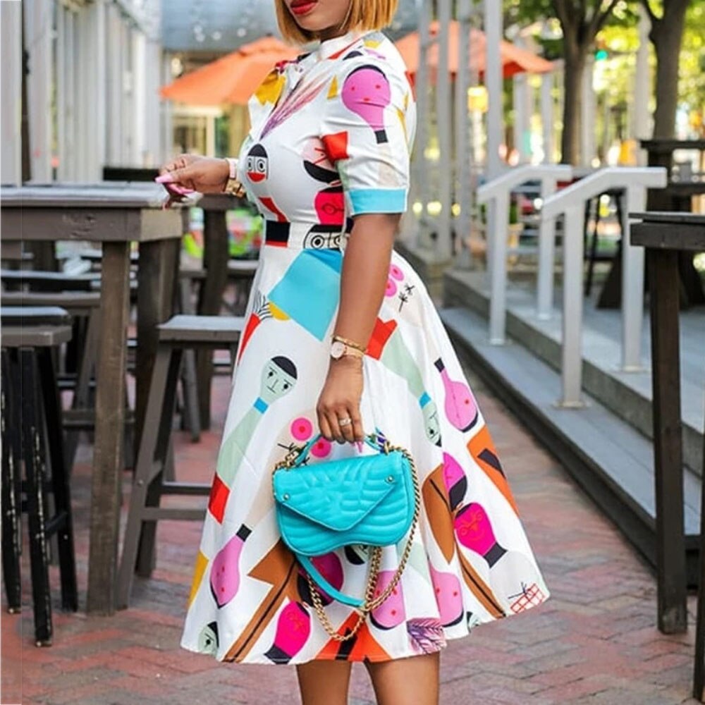 Cartoon Print High Waist A Line Women's Dress
