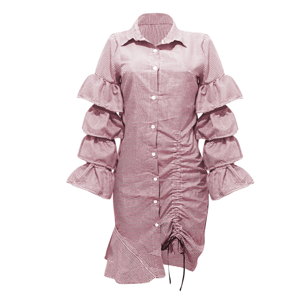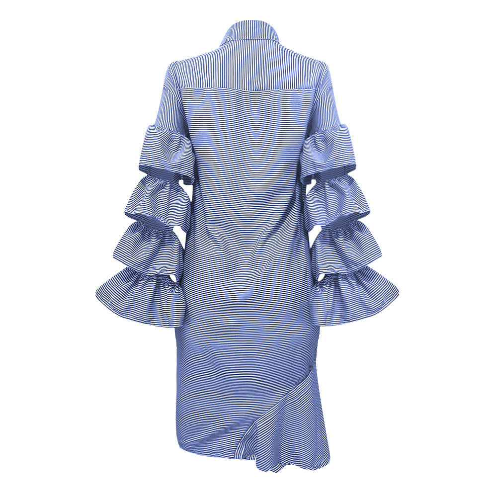 Irregular Striped Turn Down Collar Button Shirt Midi Dress