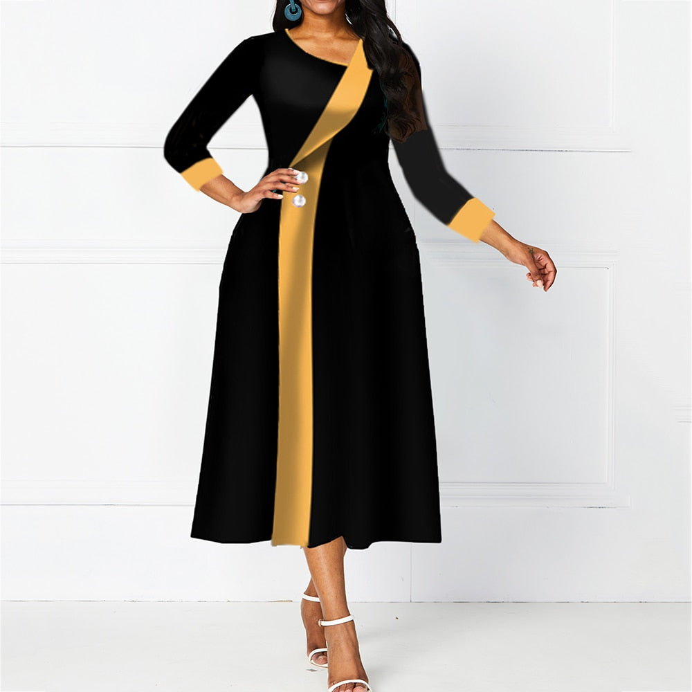 Mid-Calf 3/4 Sleeve Pullover A-line OL Lady Asymmetric Midi Dress
