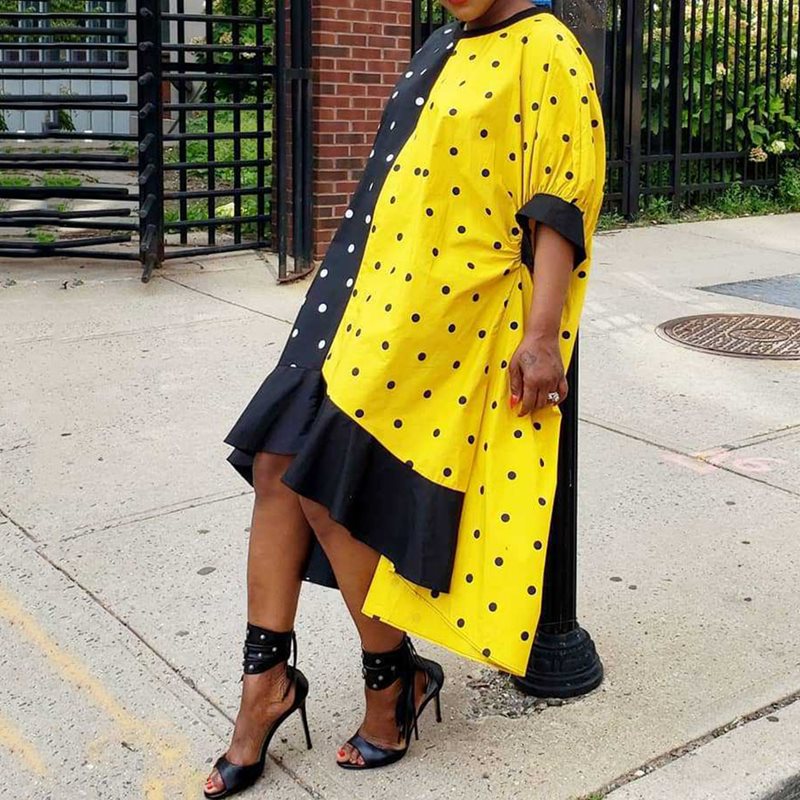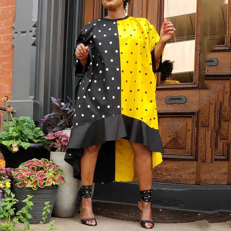 Polka Dots Color Block Round Neck Batwing Sleeve Women's Dress