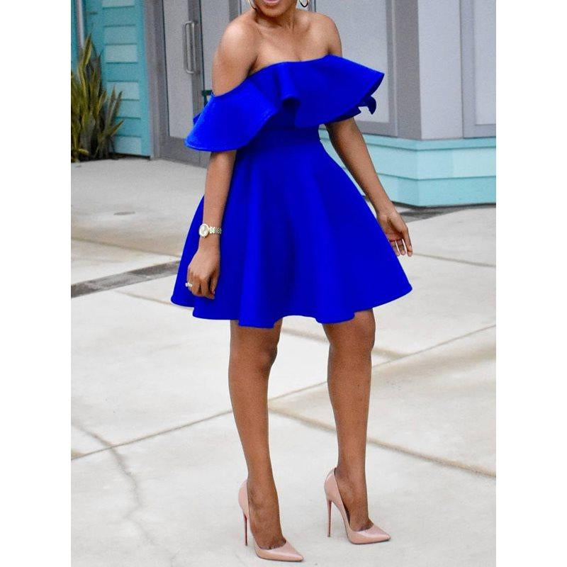 Backless Elegant Ruffles Off Shoulder Pleated A-Line Mini Dress