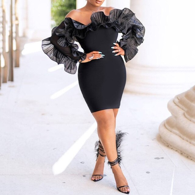 Off Shoulder Purple Elegant Cocktail Long Sleeve Women's Dress
