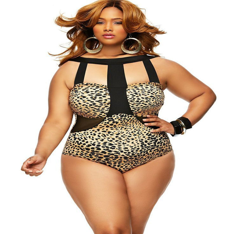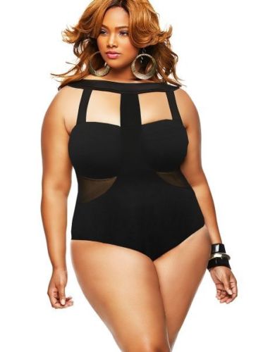One Piece Hollow Mesh Patchwork Plus Size Monokini