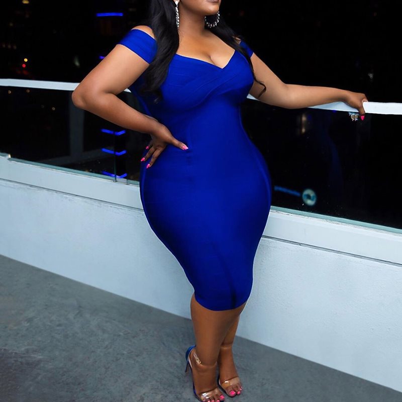 Plain Cold Shoulder Knee-Length High Waist Women' Dress
