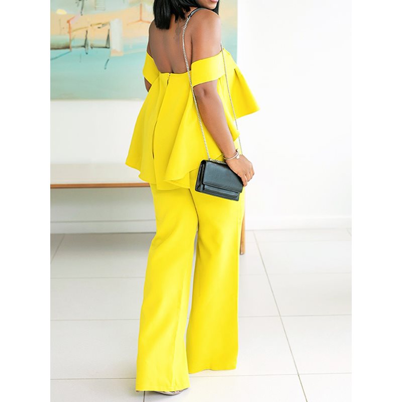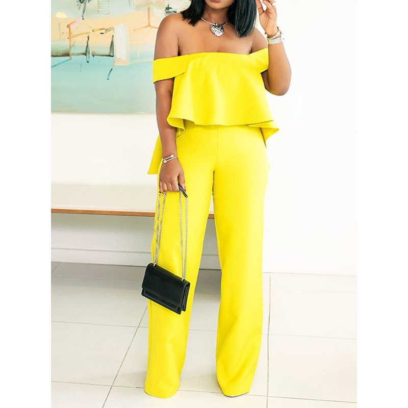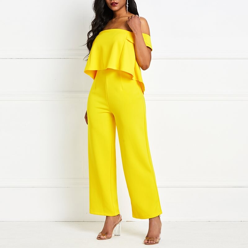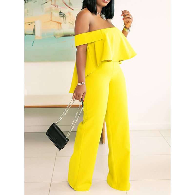 Off Shoulder Wide Leg Overalls Ruffle Backless High Waist Jumpsuits