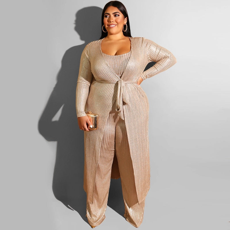 Stamping Gold Three-Piece Set Vest Wide-Leg Pants Outfit