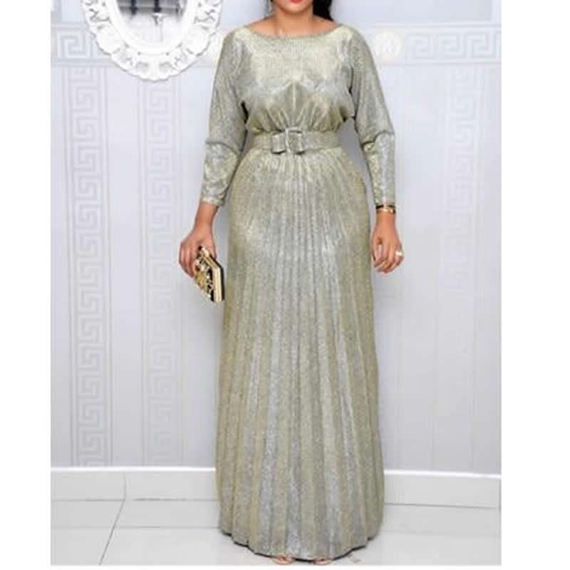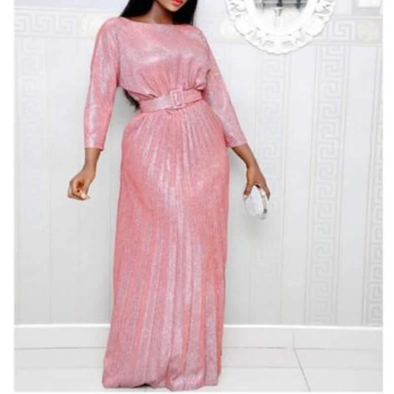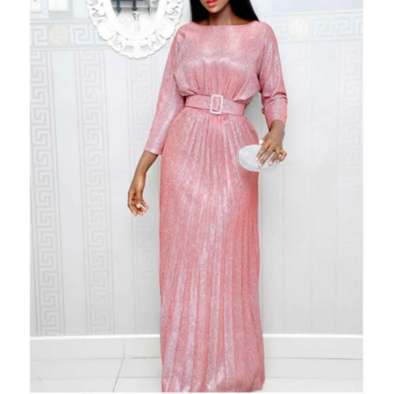 Ankle-Length Pleated O-Neck Three Quarter Sleeve Maxi Dress
