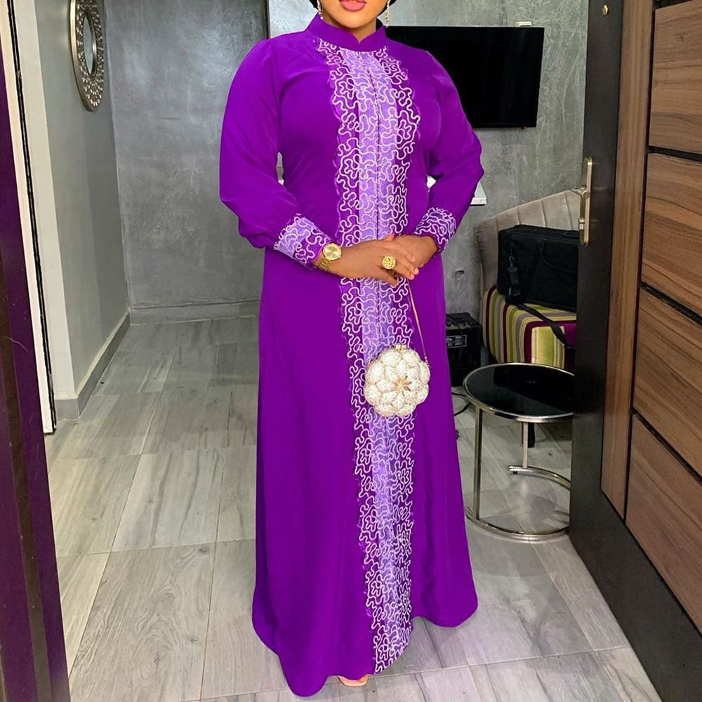 Nine Points Sleeve Ankle-Length Mandarin Collar Standard-Waist Women's Dress