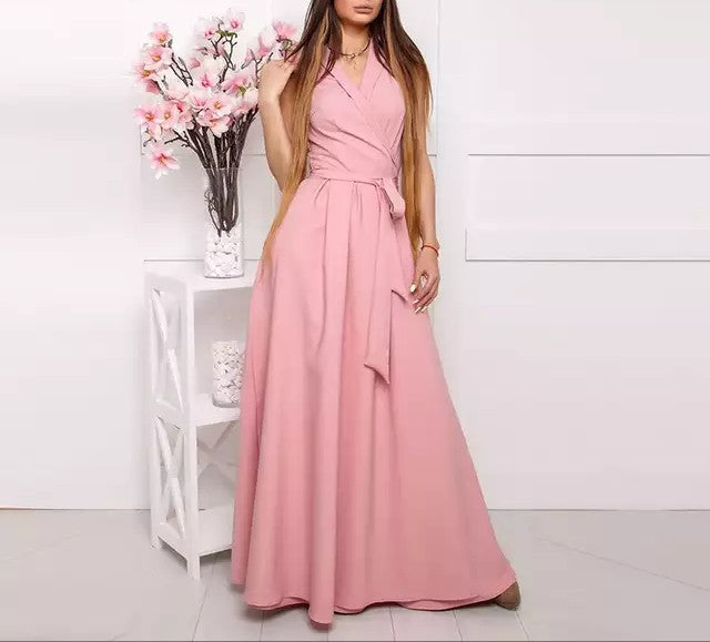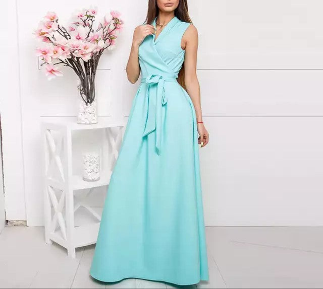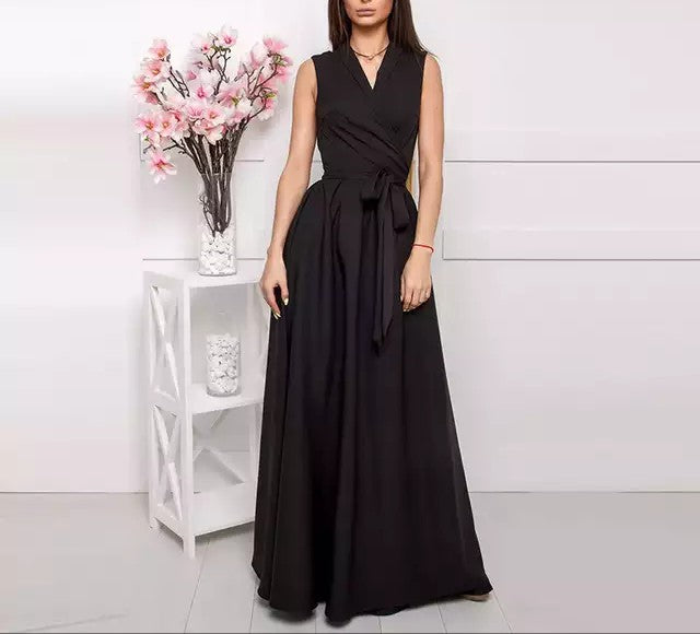 V-Neck Elegant Sleeveless Lace Up Maxi Dress