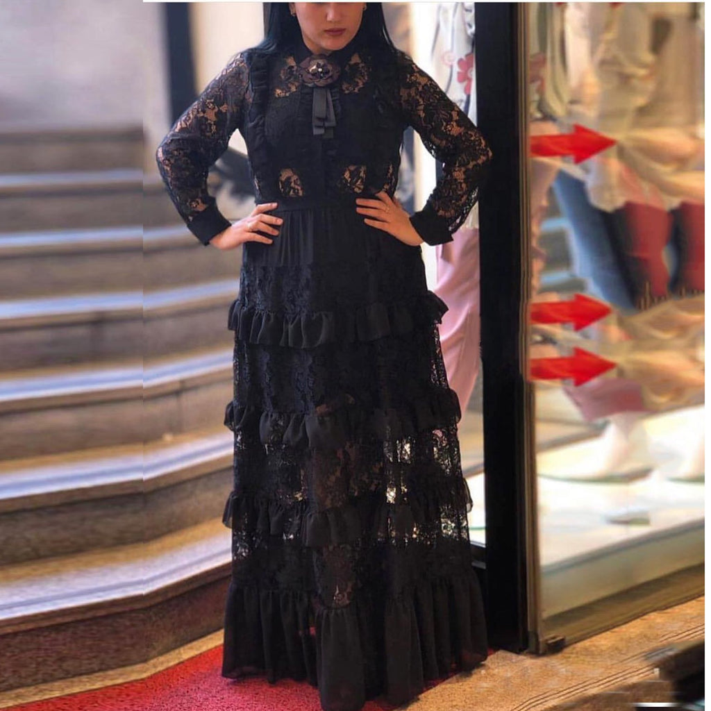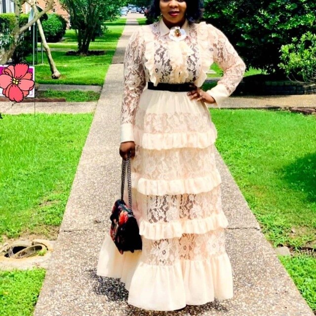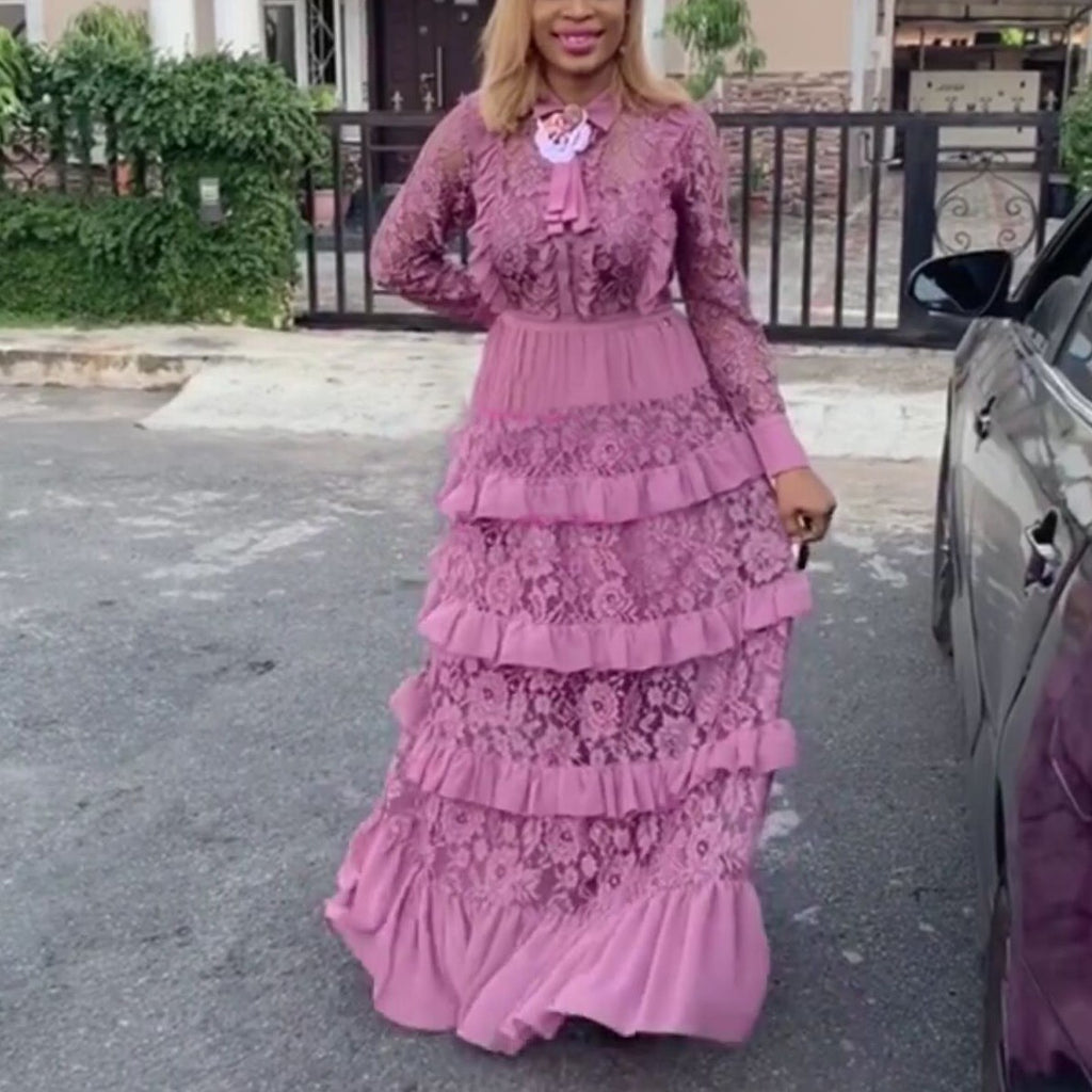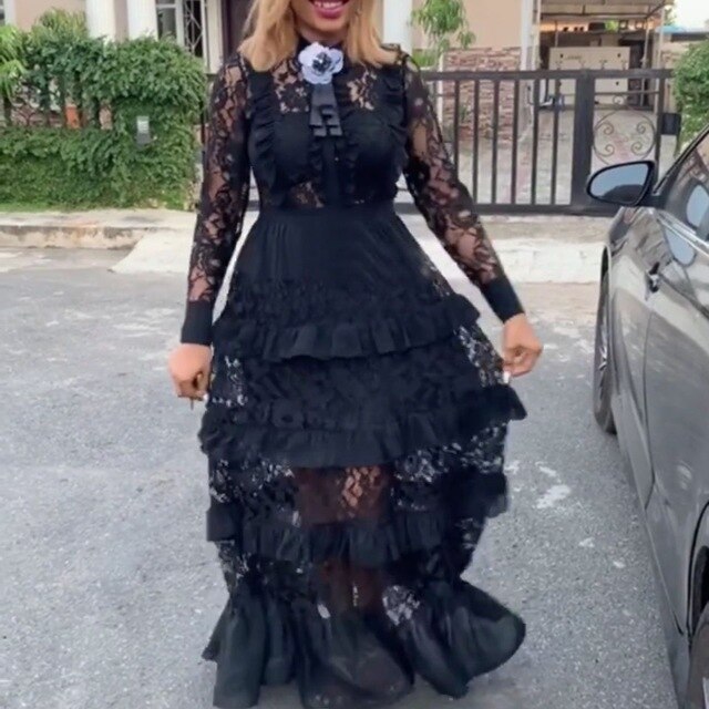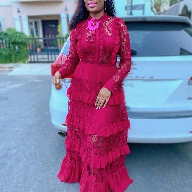 Women Lace Ruffles High Waist Elegant A-Line Maxi Dress